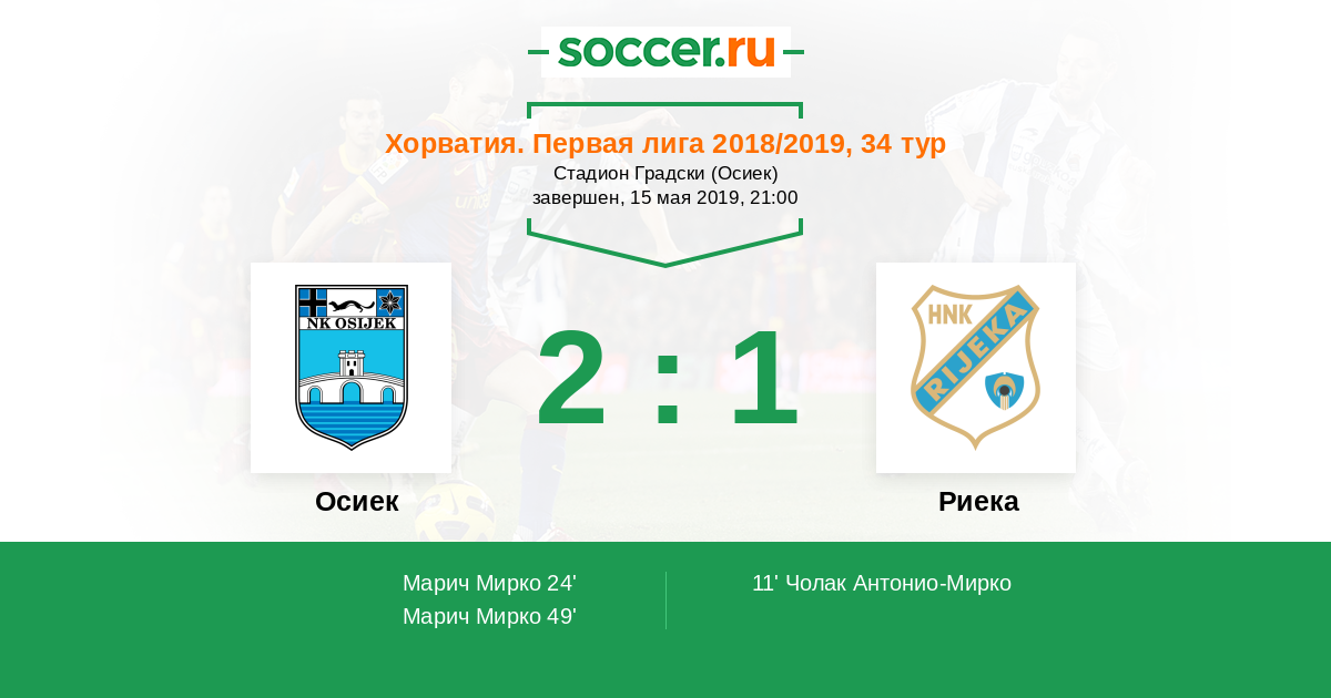 Протокол матча Осиек против Риека