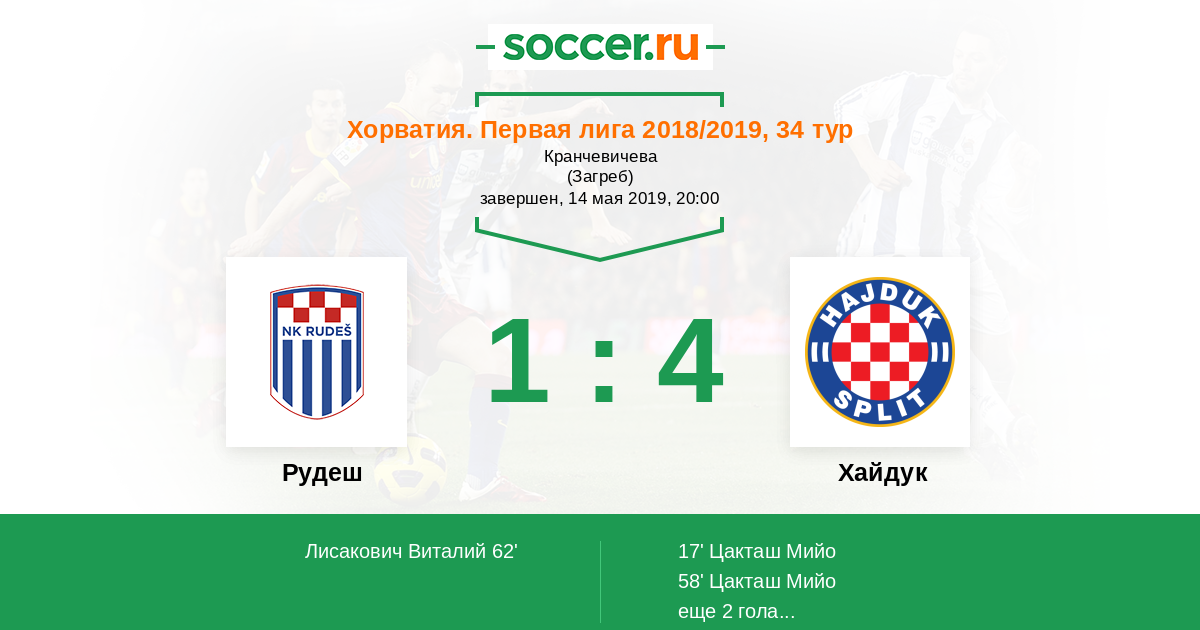 Протокол матча Рудеш против Хайдук