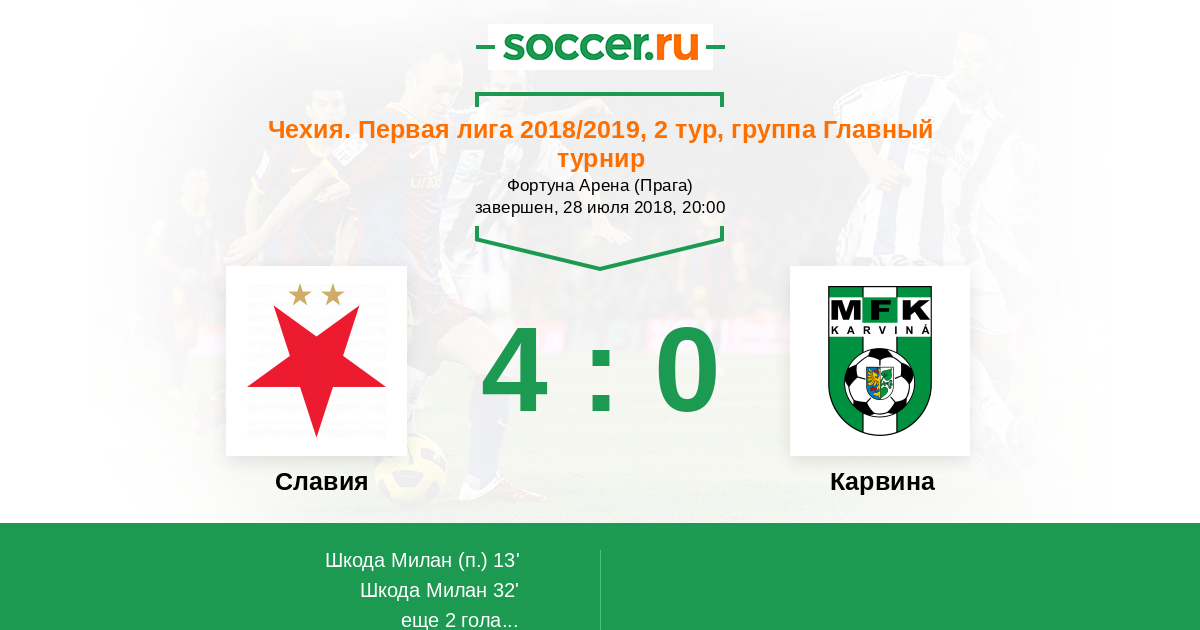 Протокол матча Славия против Карвина