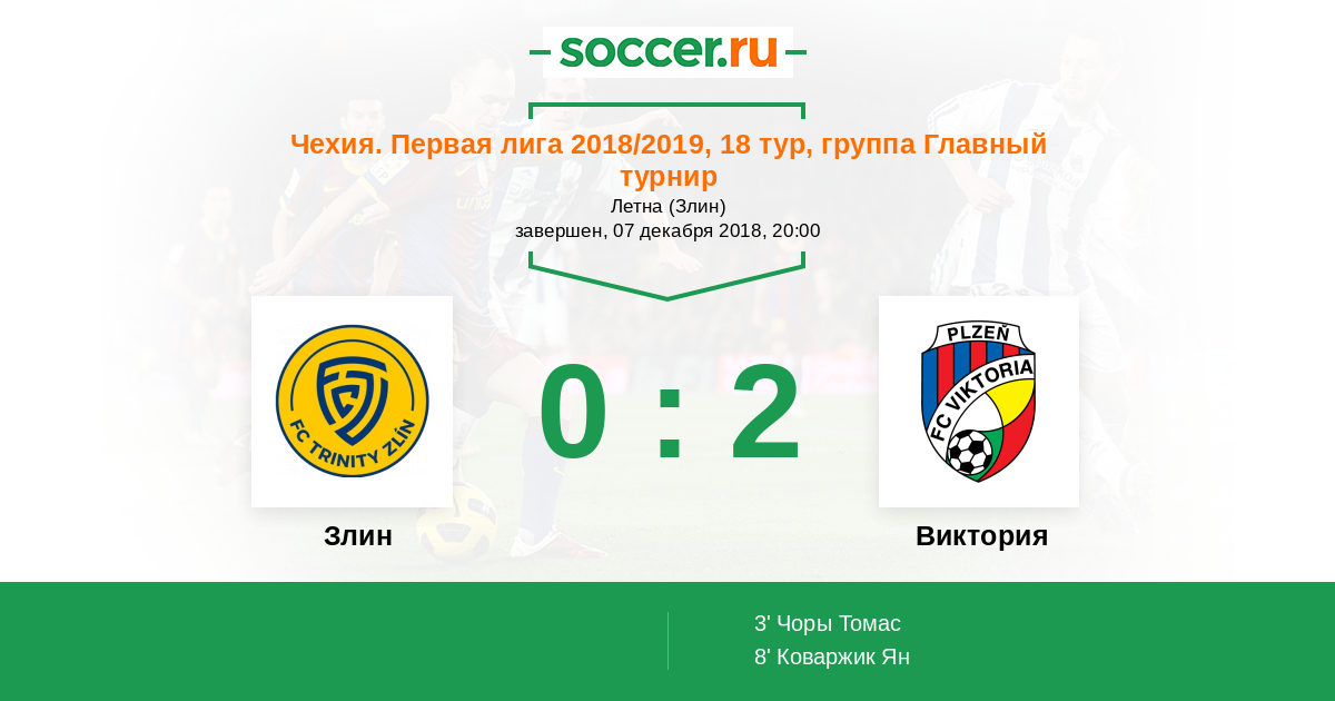 Протокол матча Злин против Виктория