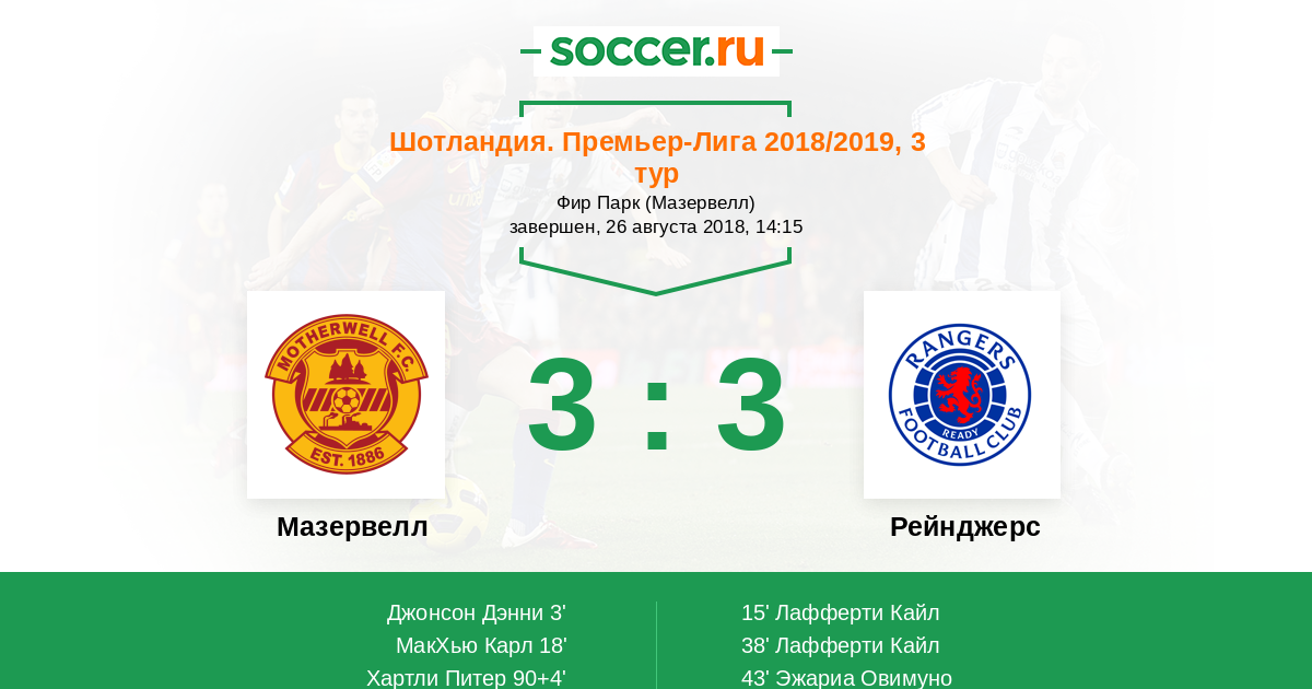 Протокол матча Мазервелл против Рейнджерс