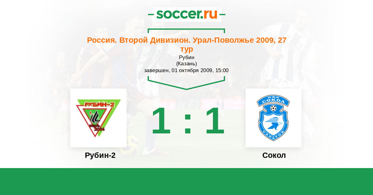 Россия. Вторая лига. Группа 4 03.06.2010 Рубин-2 Логотип футбольный клуб Рубин-2 (Казань) 1:1 Логотип футбольный клуб Сокол (Саратов) Сокол