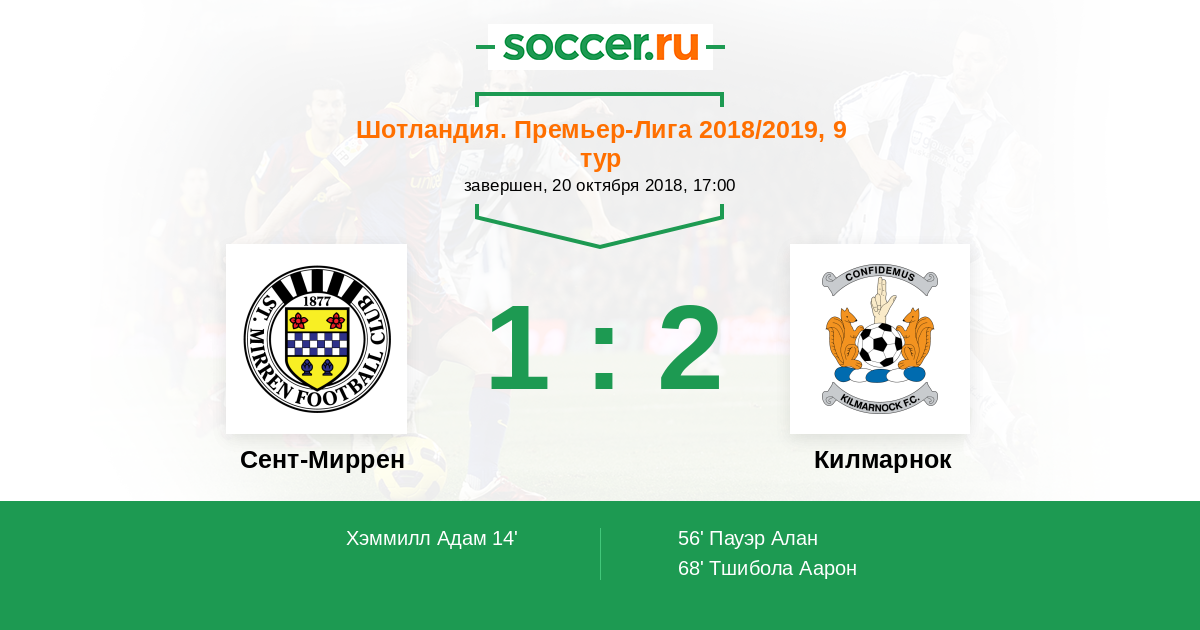 Протокол матча Сент-Миррен против Килмарнок
