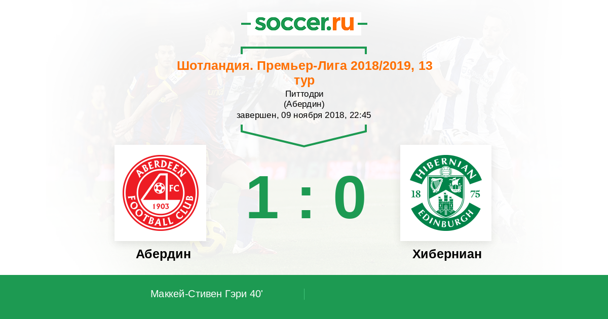 Протокол матча Абердин против Хиберниан
