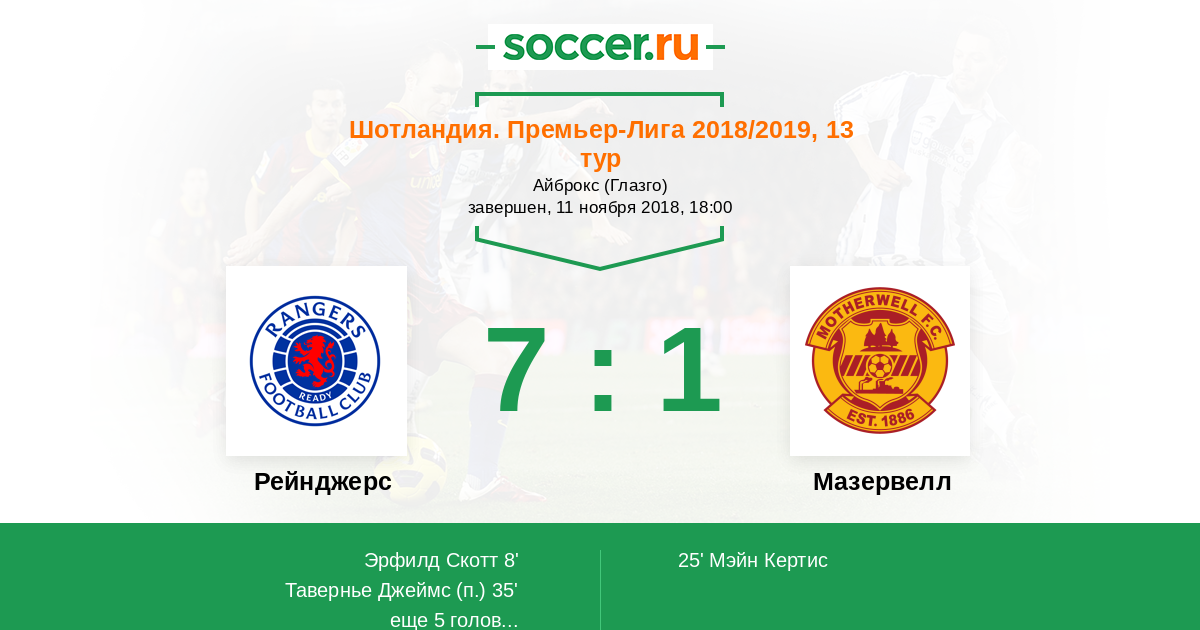 Протокол матча Рейнджерс против Мазервелл
