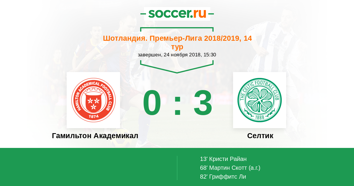 13' (0:1) Кристи Райан (17) (МакГрегор Каллум (42))