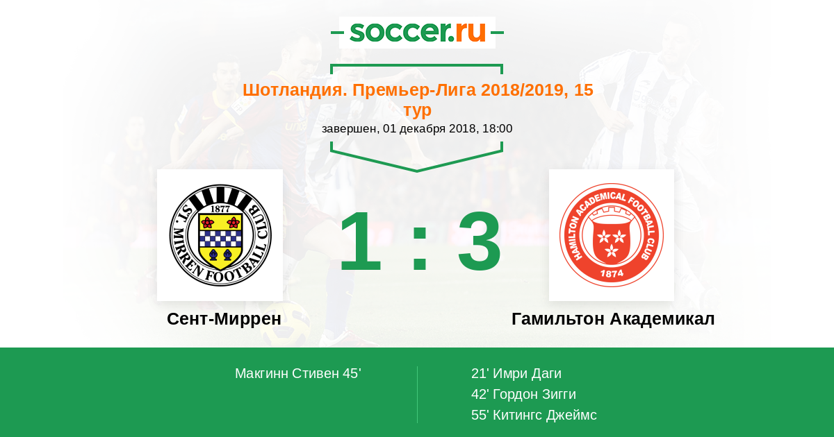 Протокол матча Сент-Миррен против Гамильтон Академикал
