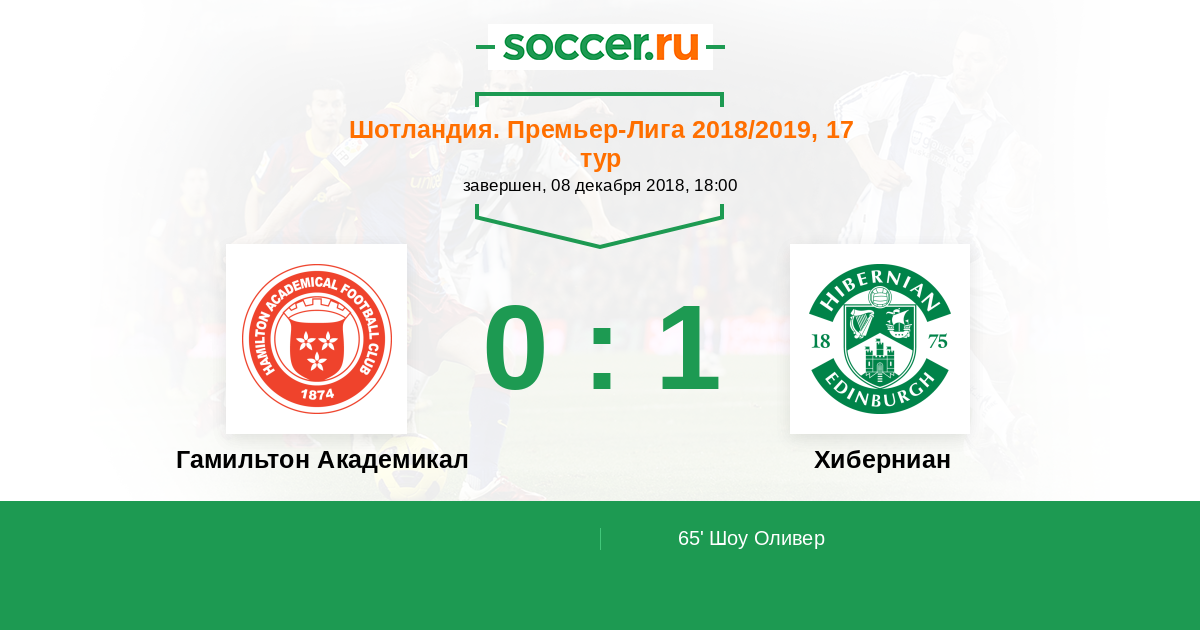 65' (0:1) Шоу Оливер (32) (Хорган Дэрил (7))