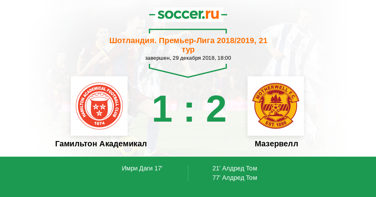 Протокол матча Гамильтон Академикал против Мазервелл
