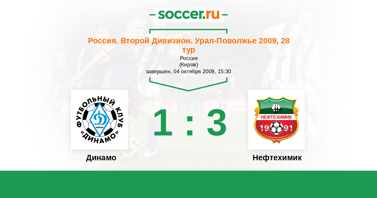 Россия. Вторая лига. Группа 4 26.06.2009 Нефтехимик Логотип футбольный клуб Нефтехимик (Нижнекамск) 3:1 Логотип футбольный клуб Динамо Киров Динамо Киров