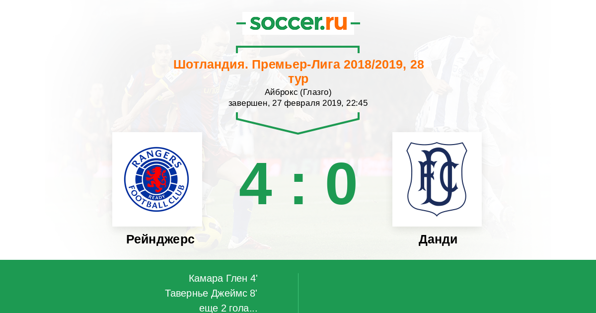 4' (1:0) Камара Глен (18) (Тавернье Джеймс (2))