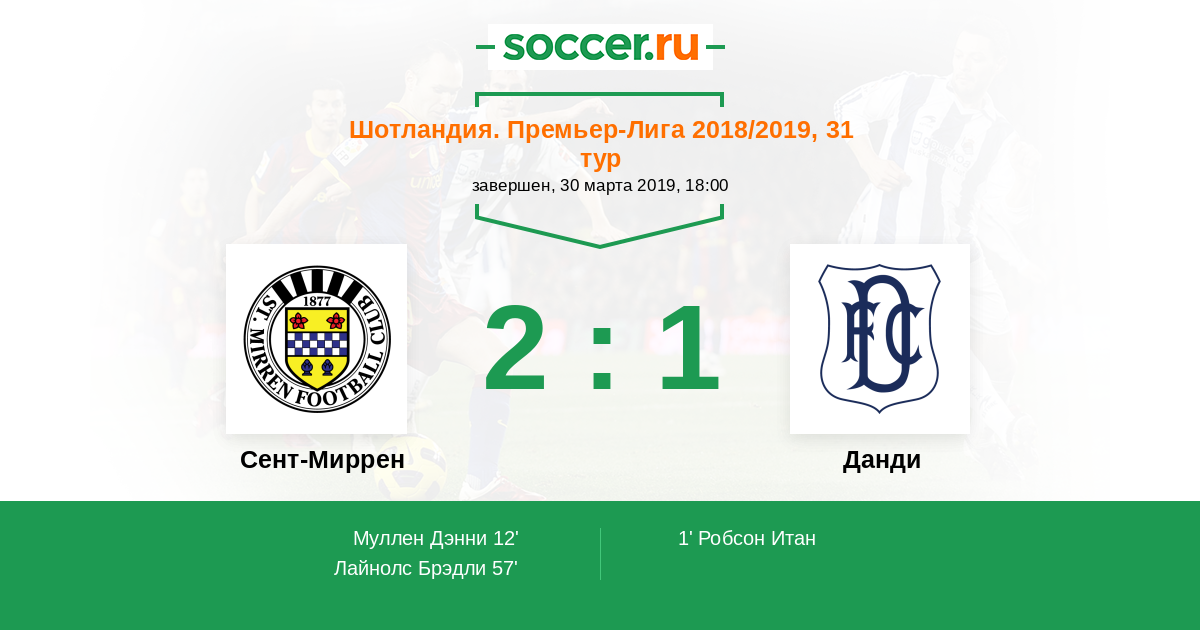 Протокол матча Сент-Миррен против Данди