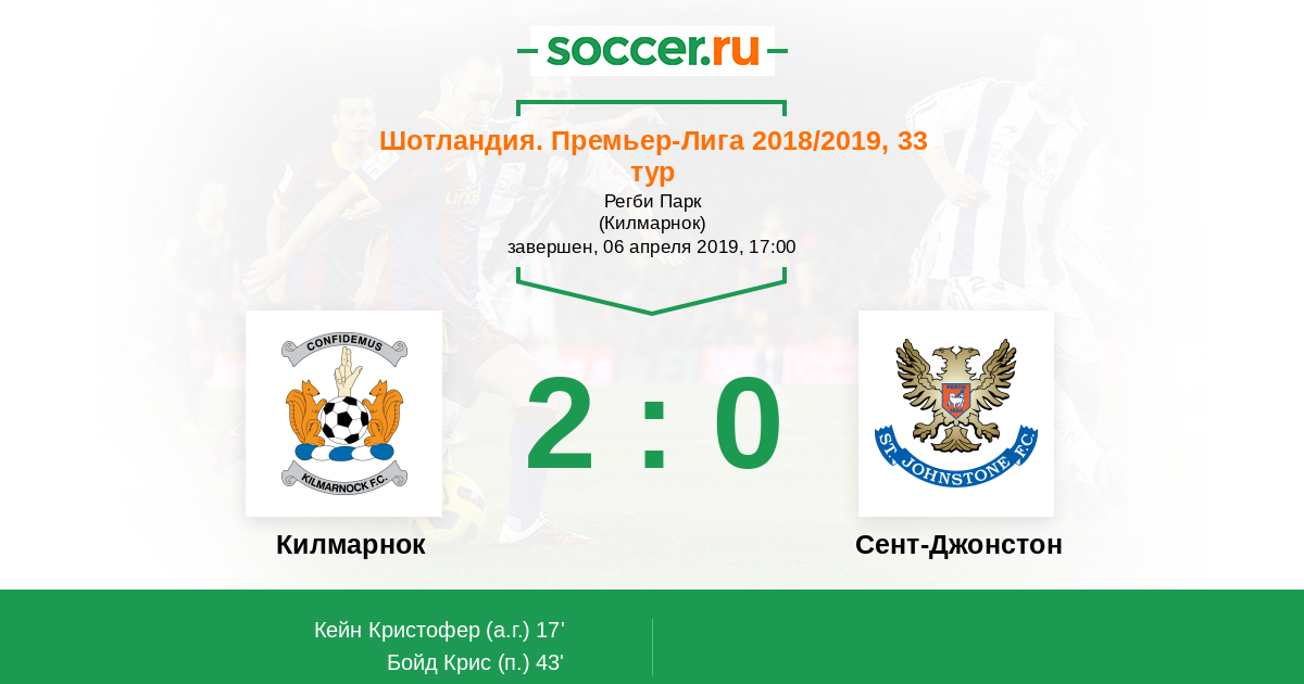Протокол матча Килмарнок против Сент-Джонстон