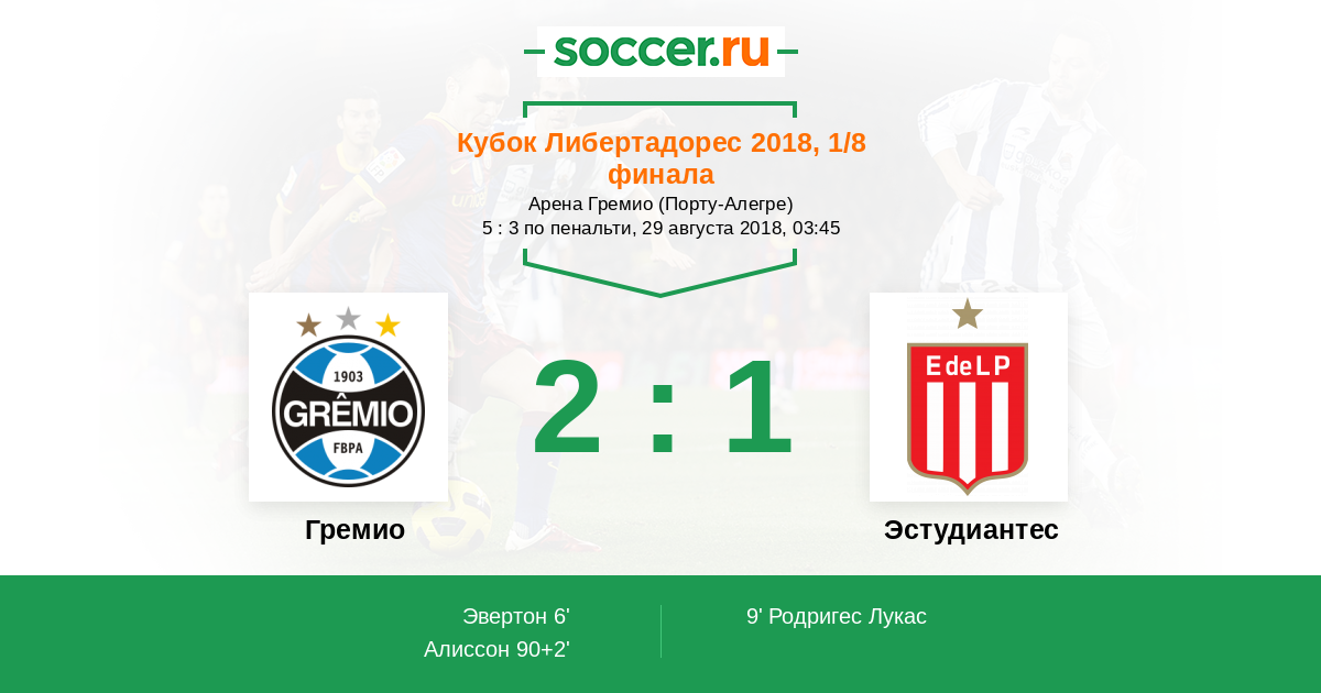 Протокол матча Гремио против Эстудиантес