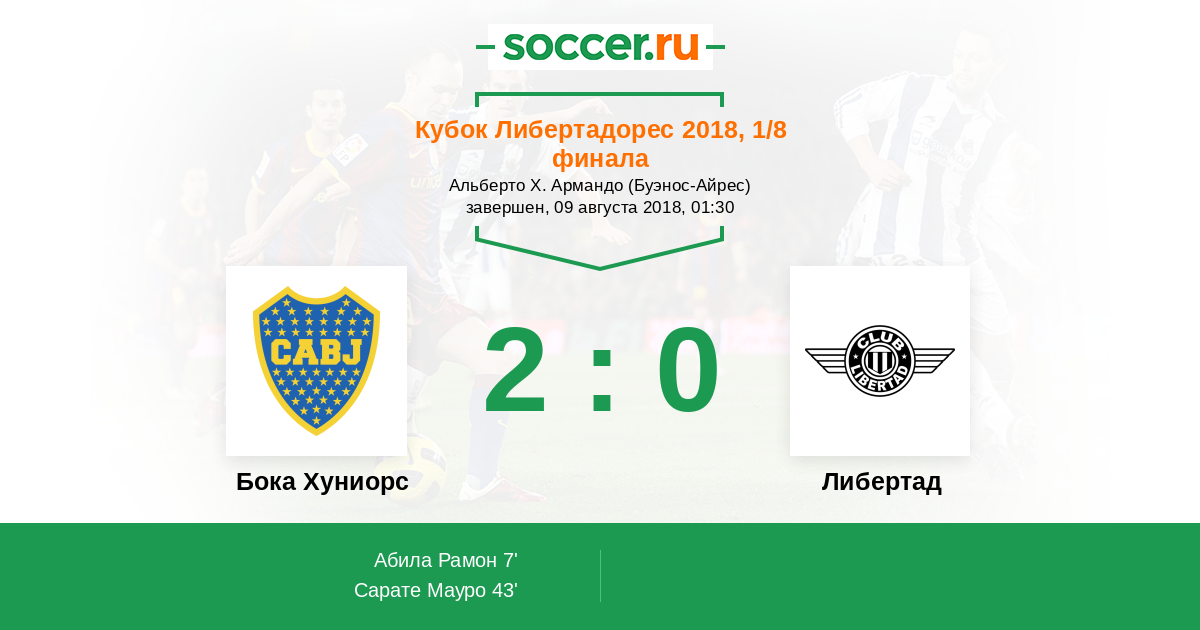43' (2:0) Сарате Мауро (19) (Абила Рамон (17))