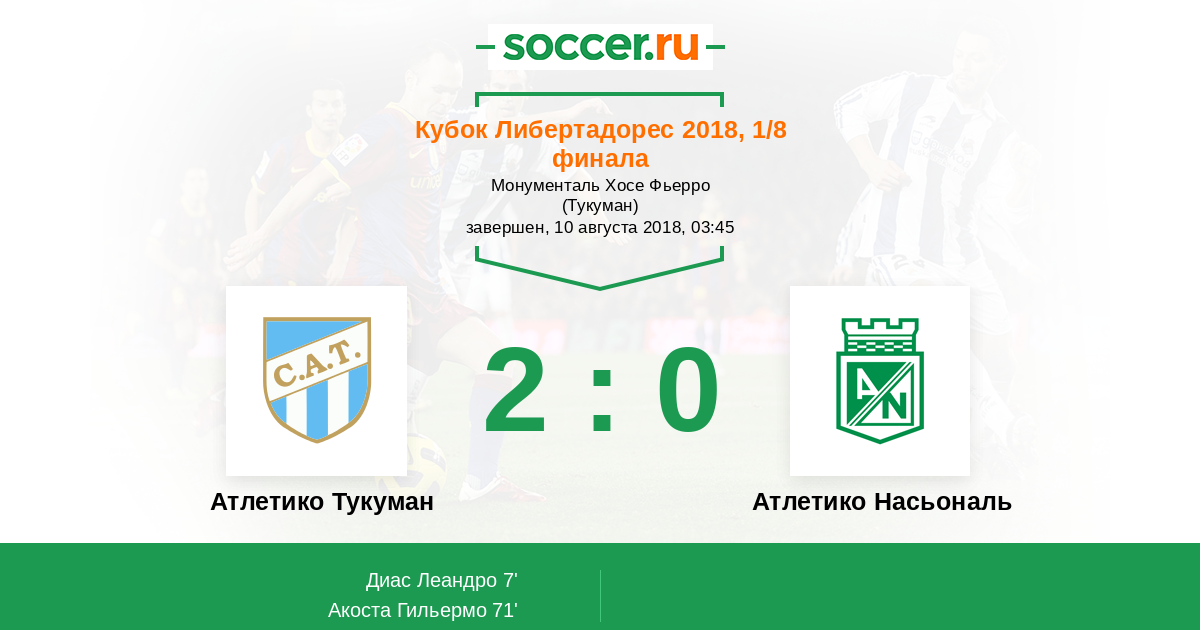 Протокол матча Атлетико Тукуман против Атлетико Насьональ