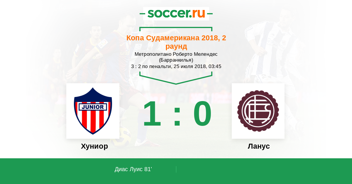 Протокол матча Хуниор против Ланус