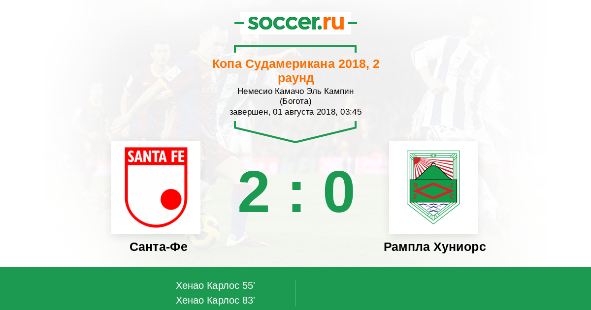 Протокол матча Санта-Фе против Рампла Хуниорс