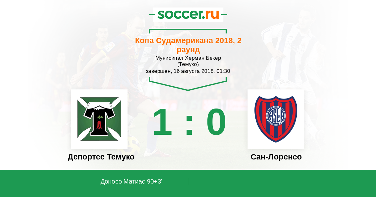 Протокол матча Депортес Темуко против Сан-Лоренсо