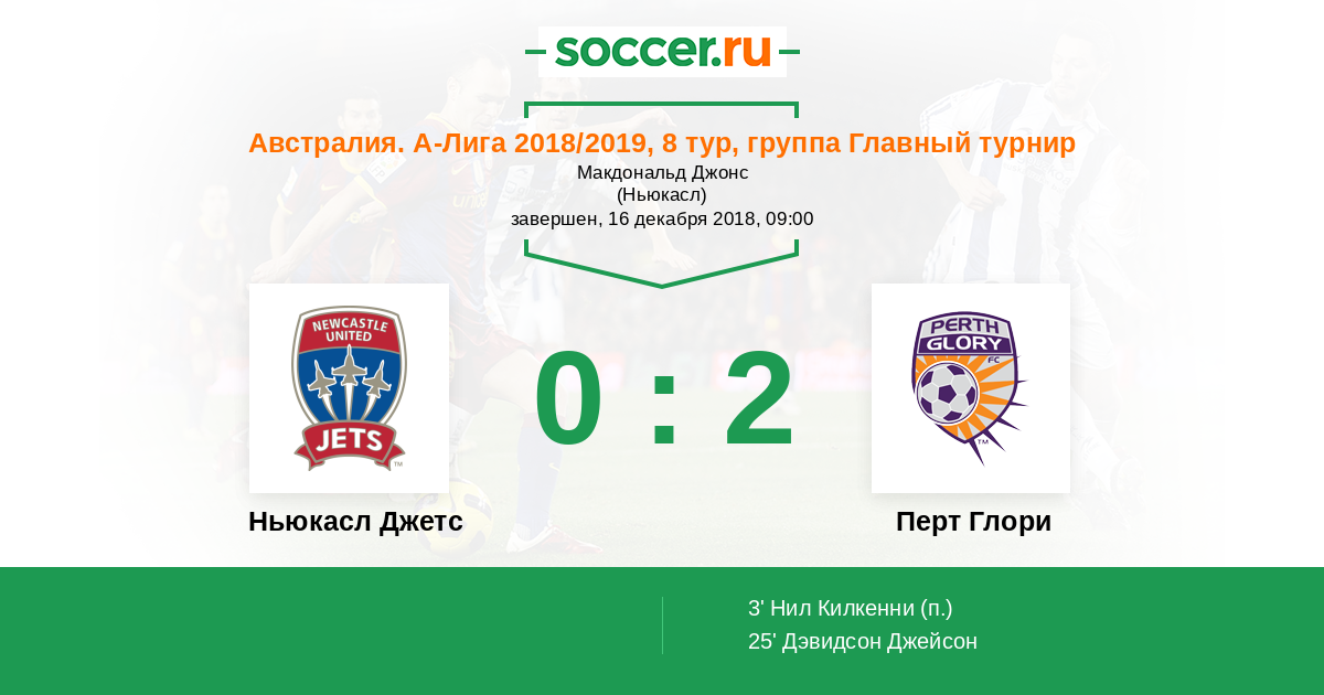 Протокол матча Ньюкасл Джетс против Перт Глори