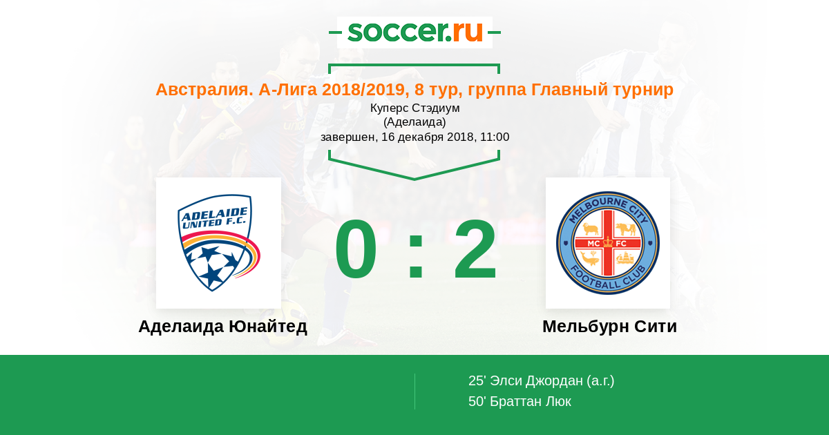 Протокол матча Аделаида Юнайтед против Мельбурн Сити