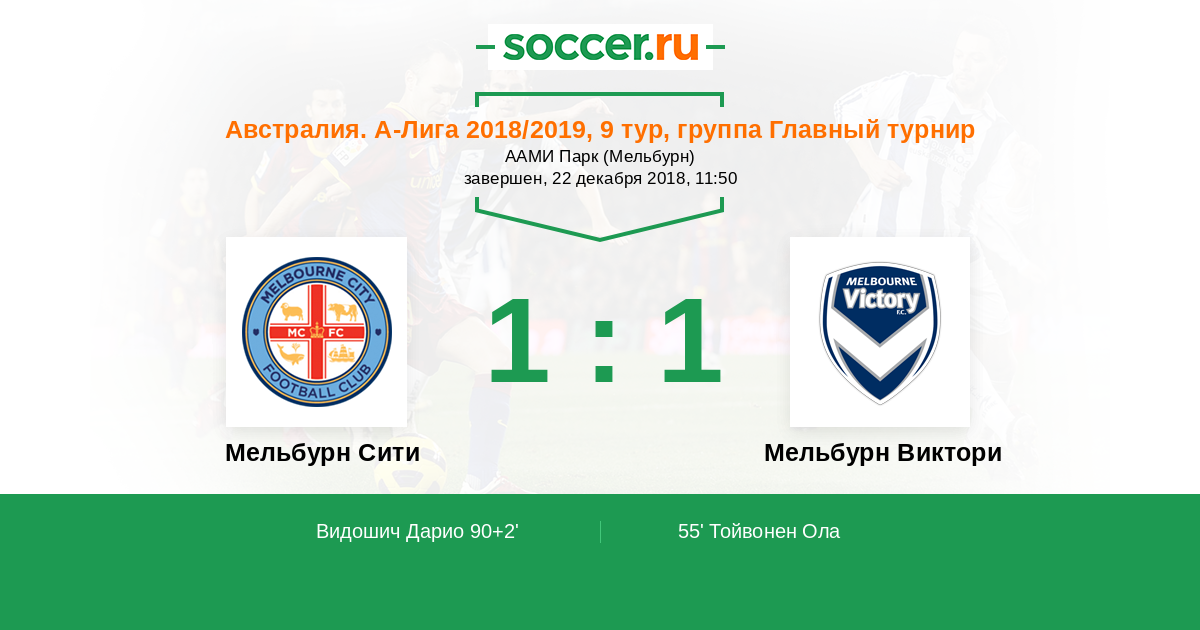 Протокол матча Мельбурн Сити против Мельбурн Виктори