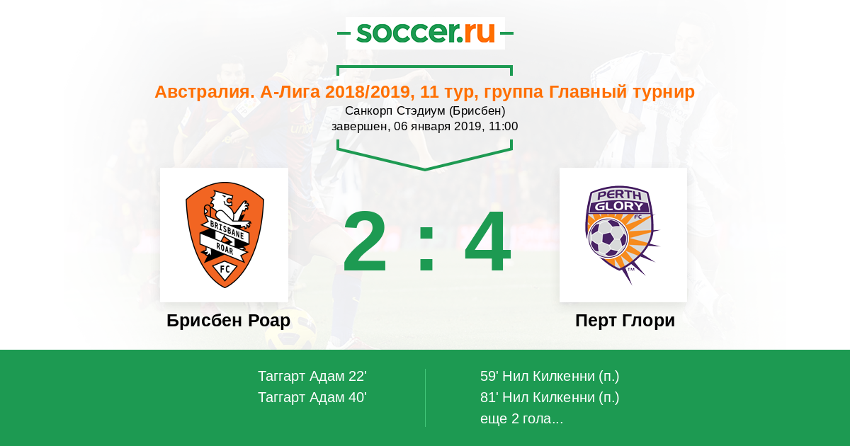 Протокол матча Брисбен Роар против Перт Глори