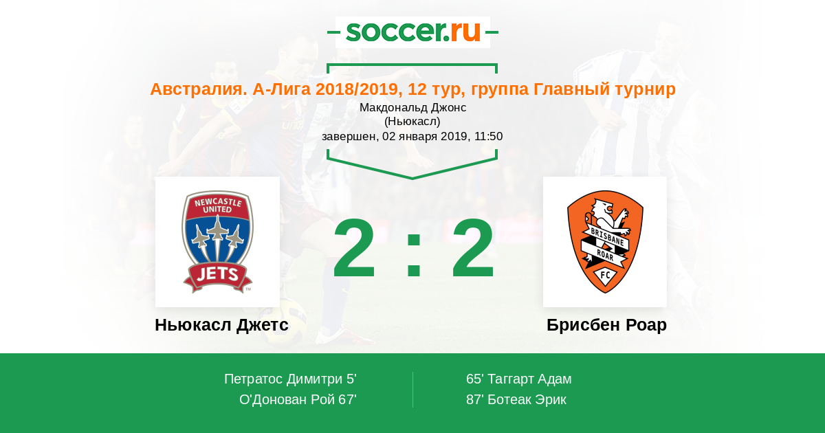 Протокол матча Ньюкасл Джетс против Брисбен Роар