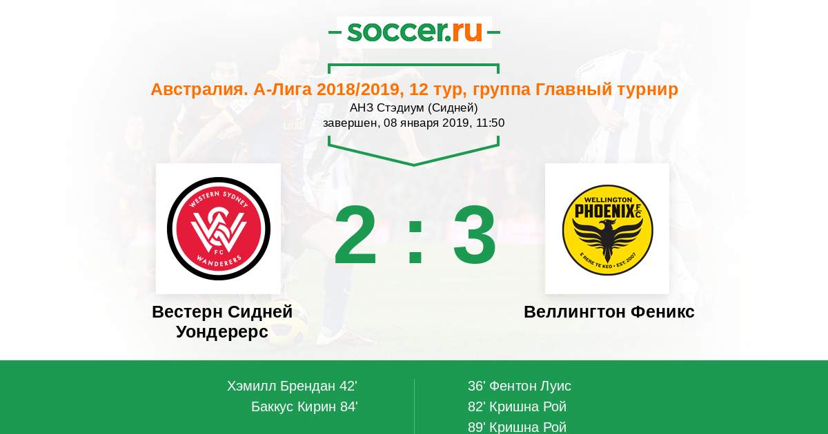 Протокол матча Вестерн Сидней Уондерерс против Веллингтон Феникс