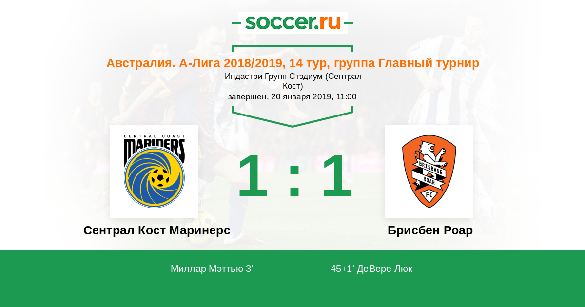 Протокол матча Сентрал Кост Маринерс против Брисбен Роар