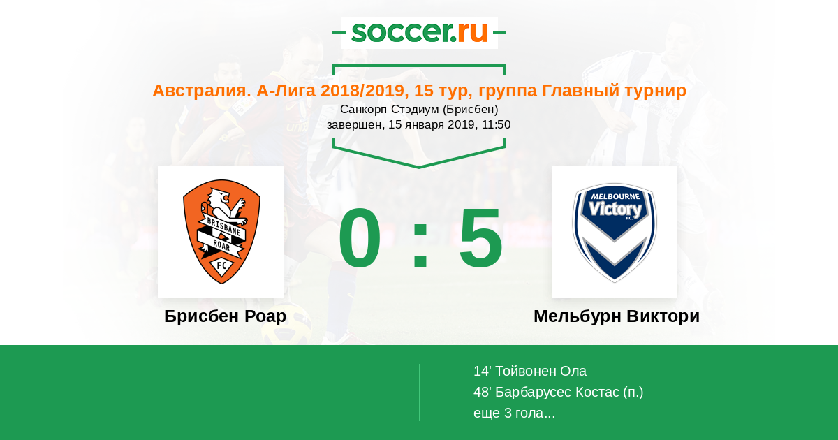 Протокол матча Брисбен Роар против Мельбурн Виктори