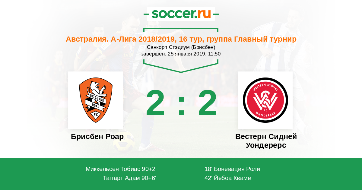 Протокол матча Брисбен Роар против Вестерн Сидней Уондерерс