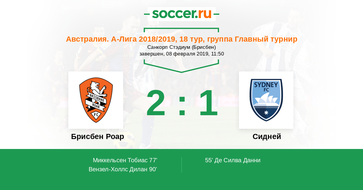 Протокол матча Брисбен Роар против Сидней