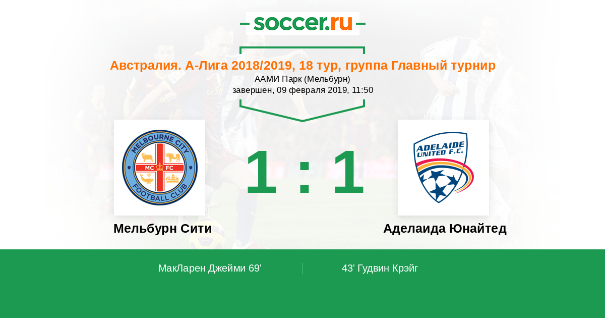 Протокол матча Мельбурн Сити против Аделаида Юнайтед