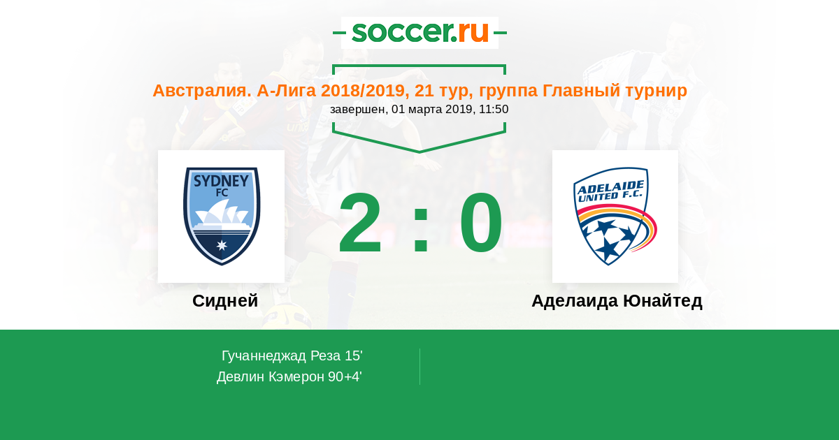 Протокол матча Сидней против Аделаида Юнайтед
