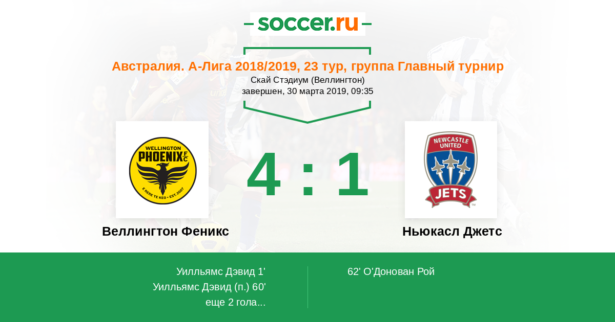 Протокол матча Веллингтон Феникс против Ньюкасл Джетс