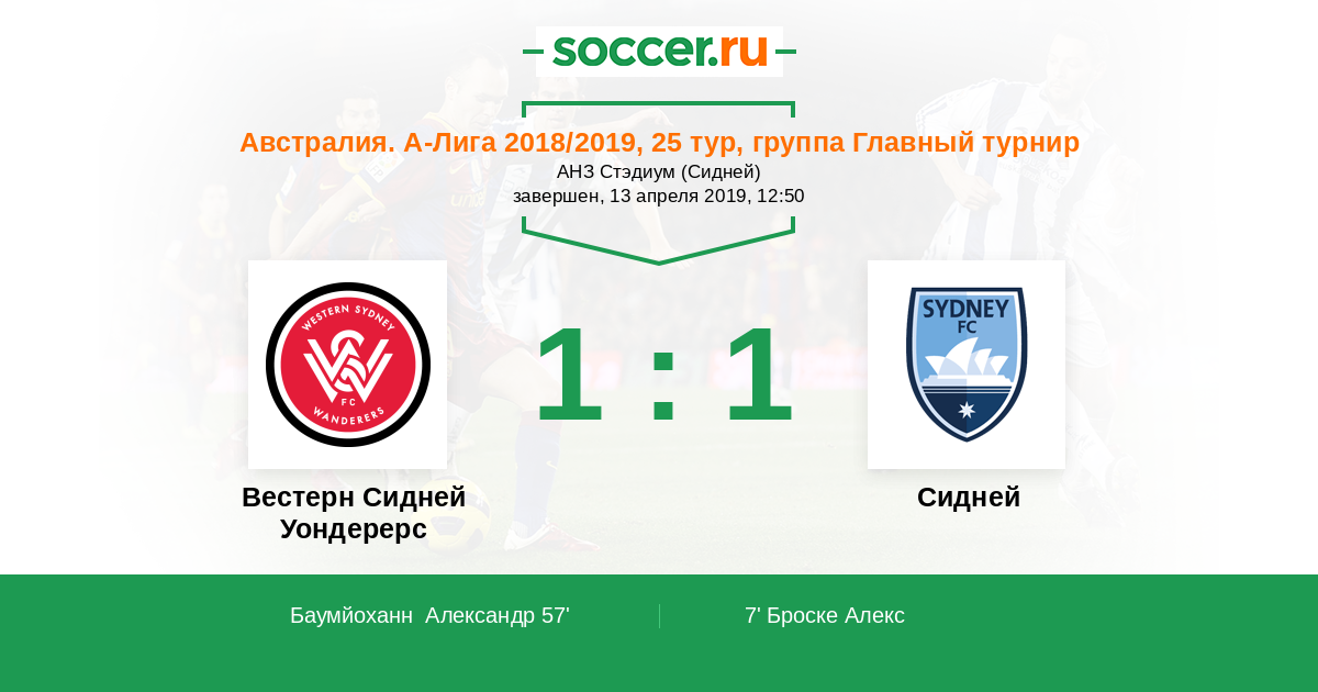 Протокол матча Вестерн Сидней Уондерерс против Сидней