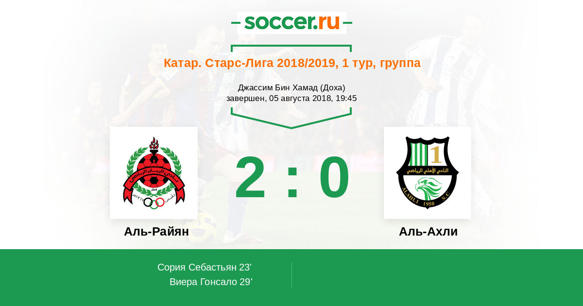 Протокол матча Аль-Райян против Аль-Ахли