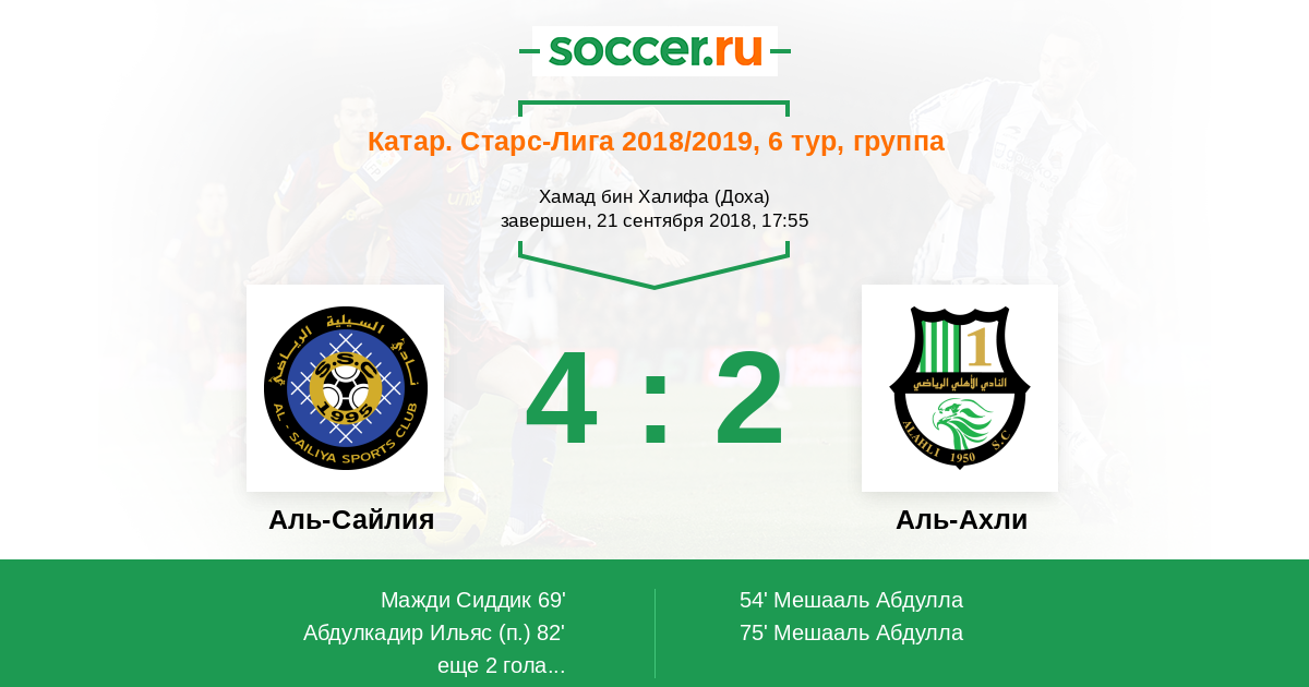 Протокол матча Аль-Сайлия против Аль-Ахли