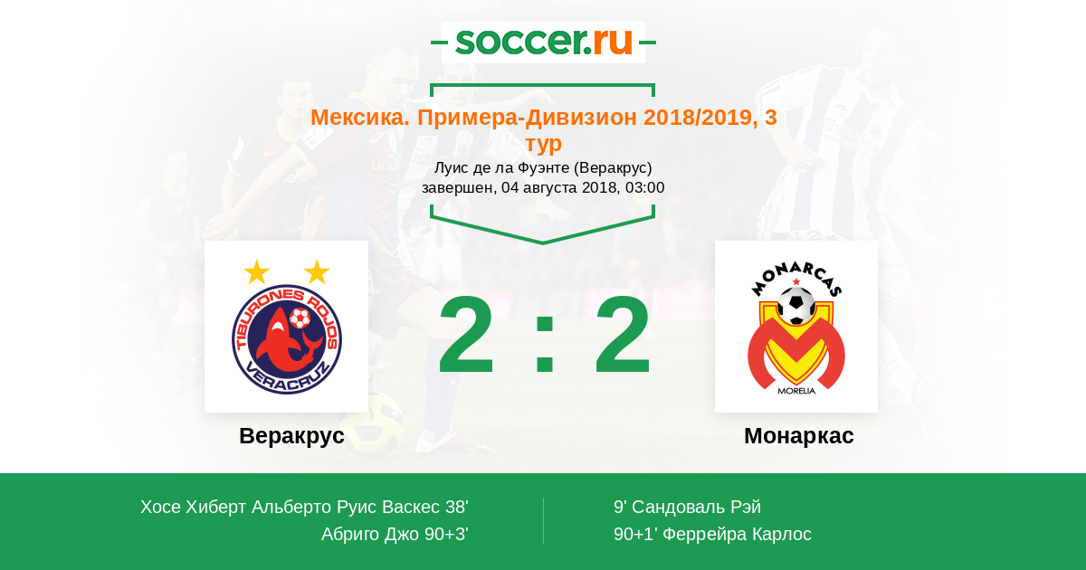 Протокол матча Веракрус против Монаркас