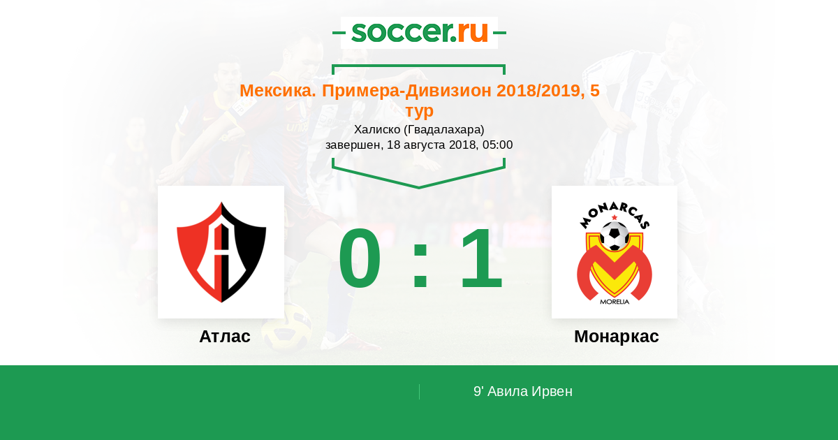 9' (0:1) Авила Ирвен (11) (Сандоваль Рэй (19))