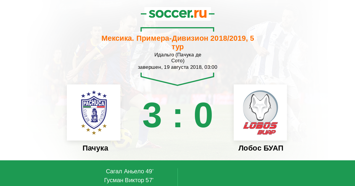 Протокол матча Пачука против Лобос БУАП