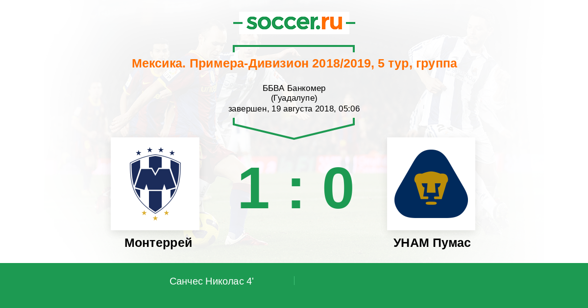 Протокол матча Монтеррей против УНАМ Пумас