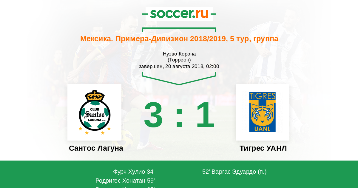 Протокол матча Сантос Лагуна против Тигрес УАНЛ