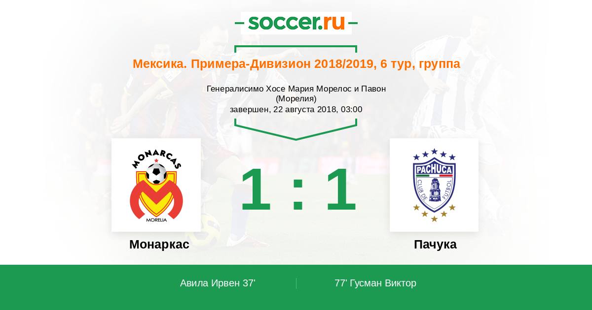 Протокол матча Монаркас против Пачука