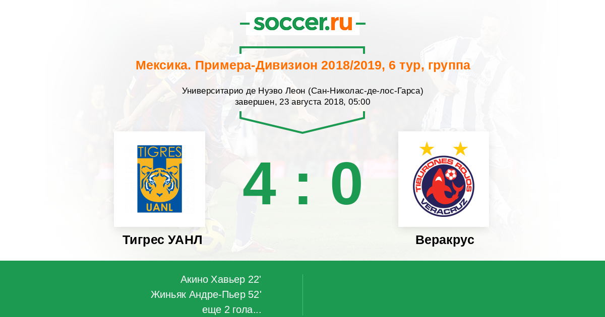 Протокол матча Тигрес УАНЛ против Веракрус