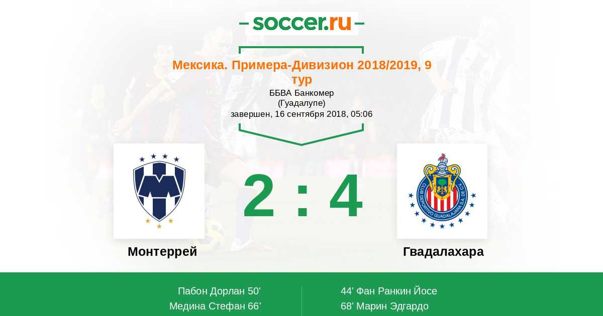 Протокол матча Монтеррей против Гвадалахара