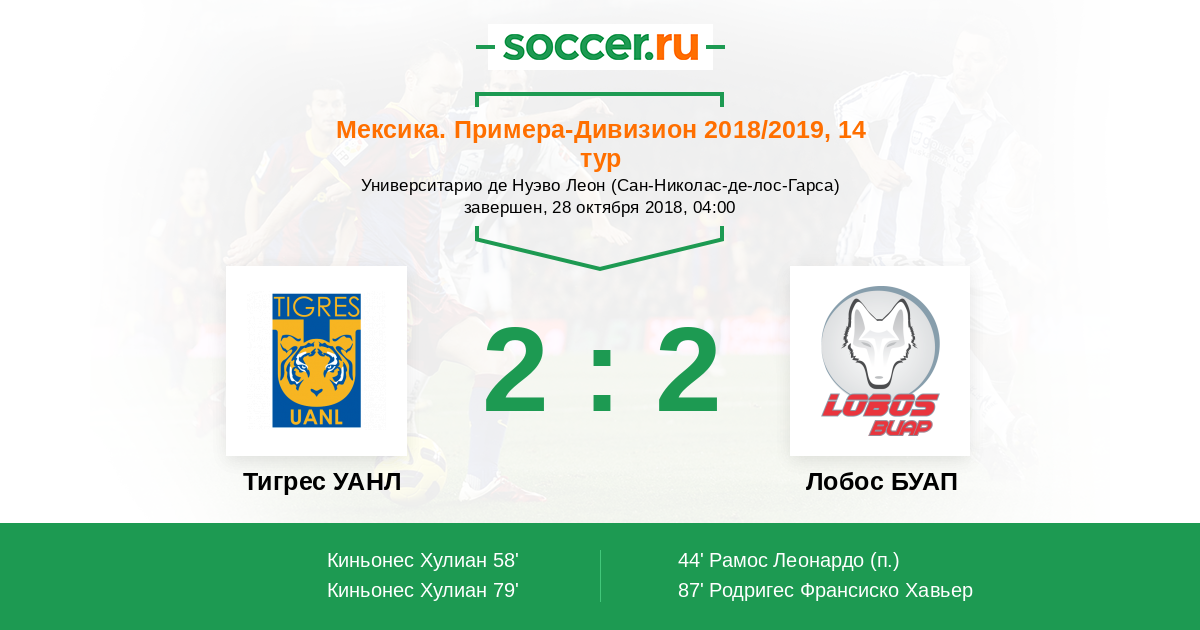 Протокол матча Тигрес УАНЛ против Лобос БУАП