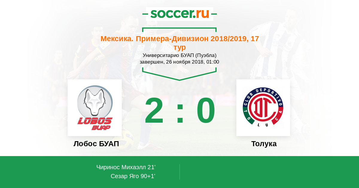 21' (1:0) Чиринос Михаэлл (33) (Рамос Леонардо (29))
