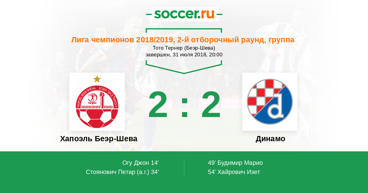 Протокол матча Хапоэль Беэр-Шева против Динамо